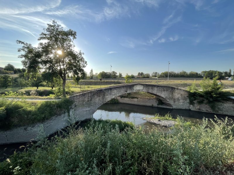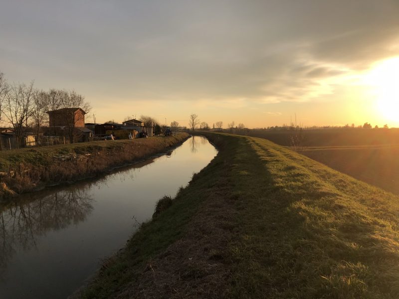 Continuiamo verso nord attraversando l’area naturalistica dell’Oasi La Rizza, per giungere infine a Malalbergo. Qui l’itinerario piega decisamente verso est. Lasciamo infatti il Canale Navile per raggiungere l’argine del fiume Reno, pedalando su sterrato compatto fra campi aperti e canneti abitati da aironi. A Sant’Agostino troviamo una fontanella utile per rifornire le borracce.